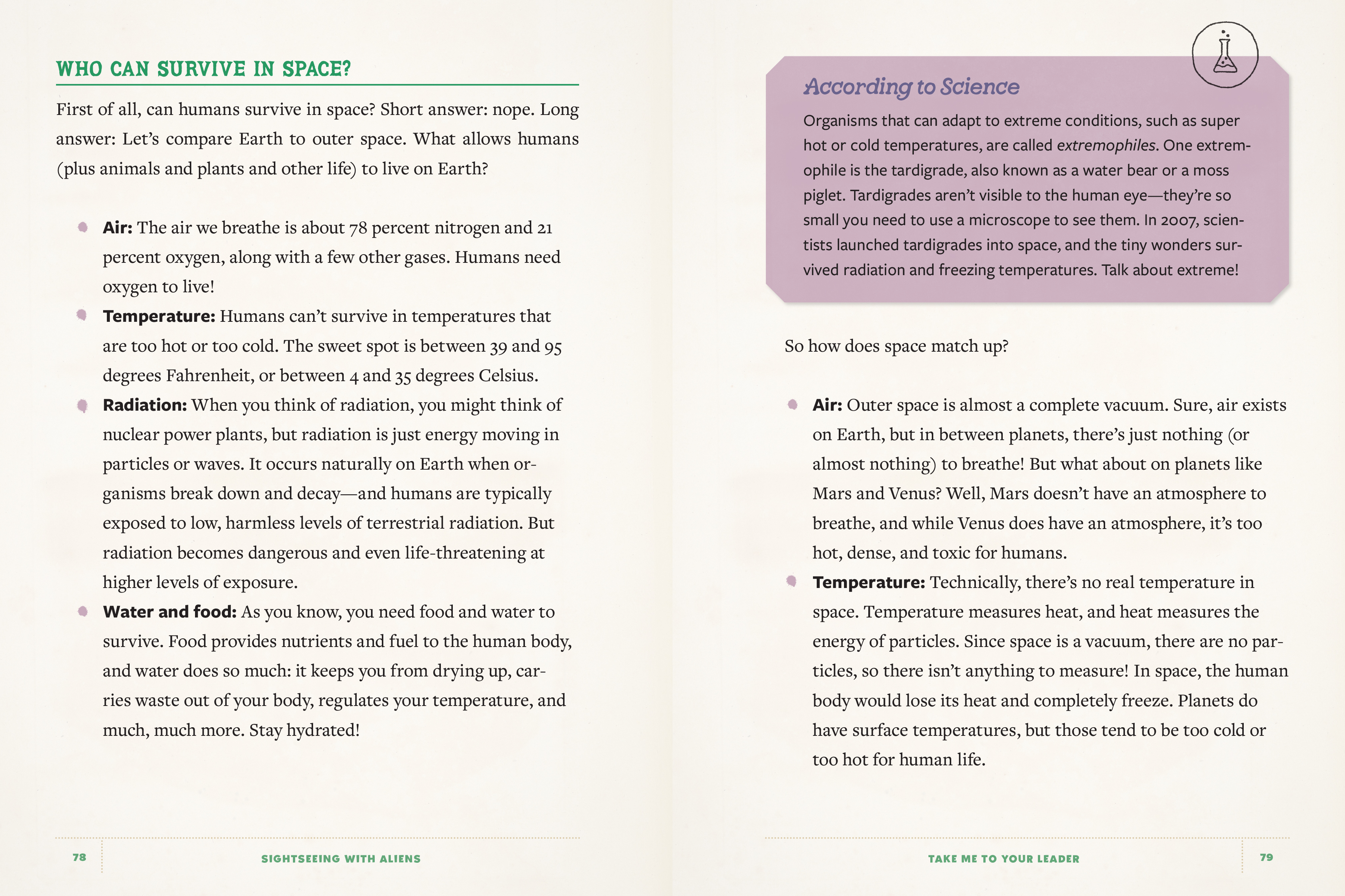 The topic of aliens is a gigantic question mark. Scientists haven’t discovered evidence of life on other planets, but that doesn’t mean they’re ruling it out altogether. What we know about space and the possibility of life on other planets is constantly changing. In fact, science itself is constantly changing. (Fun fact: scientists are still discovering new chemical elements!) In the meantime, it doesn’t hurt to ask ourselves a few questions: What would you do if you met someone from another planet? How do you treat those who are different from you? What do you think the future will look like—for you and for Planet Earth? And is astronaut ice cream actually any good?